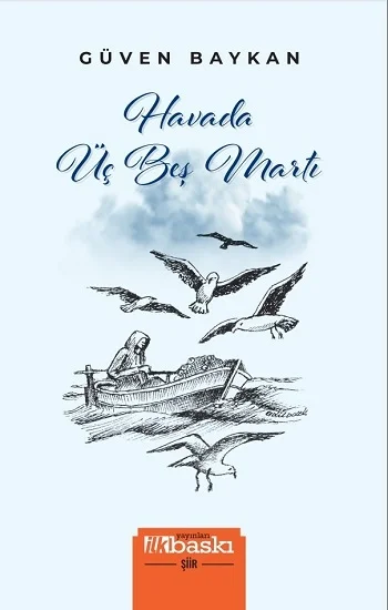 “Dize şiirin omurgasıdır, hayatla damar bağı olmayan dize şiir olmaz. Bazen bir dize şiirdir. İşte Güven Baykan, bu şiirin yolcusudur!” Nihat Behram “Güven Baykan, dize ağırlıklı kısa şiirler yazıyor. Bazen birkaç dizeyle etkili bir atmosfer yaratabiliyor. Konuları yaşamla iç içe. Bir solukta okuyor ve tanıdık duygular yaşıyorsunuz. Havada Üç Beş Martı, 105 parçaya bölünmüş senfonik bir şiir gibi…” Attila Aşut Fotoğraf sanatçısı, yazar, şair Güven Baykan’ın Karadeniz’in sert rüzgârlarının, azgın deniziyle mücadele eden takalarının ve çay kokan havasının sıcaklığından damıtarak dizelerine yansıttığı bu şiirlerinde aşkı, özlemi ve en çok da martıları duyumsayacaksınız… sonrasendüşersin aklımayüzümde gülümsemehavada üç beş martı…