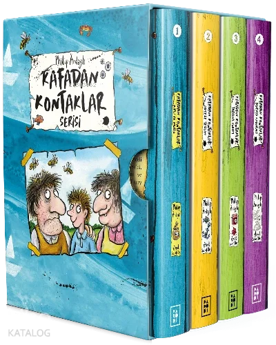 Kafadan Kontaklar 1 – Kirli ve MutluKafadan Kontaklar Ailesi’yle tanıştınız mı?Hayır mı? O zaman ne duruyoruz!Bu aile sıradan bir aile değil. İyi sayılmazlar, ama kötü de değiller.Bi’dakika… “değiller” mi dedim? Elbette kötüler, hem de sandığınızdan da kötü!Ama Sunny, yani ailenin “aşırma” çocuğu fena değil.Az önce “aşırma” mı dedim? Evet, doğru…Sunny, çamaşır ipinde kulaklarından asılıyken ki bu, kulaklarından birinin diğerinden neden büyük olduğunu açıklıyor Bay Grunt’un çekip aldığı, pardon “aşırdığı” bir çocuk!Evet, ama dahası da var… Sunny’nin öyle yola gelmez, yana yatmaz, öne eğilmez, üzerine bolca tutkal sürmekle ya da yapışkan yapıştırmakla düzleşmeyen saçlarını görmediniz daha. Yoksa gördünüz mü? Hmm, desenize bütün heyecan kaçtı…Bu komik, macera dolu eğlenceli hikâyede Kafadan Kontaklar Ailesi’ni, Tik ve Tak’ı,Bigg Malikânesi’ni ve onun gaddar sahibi Lord Bigg’i; Larry Smalls’u, Mimi’yi, Jumbo’yu ve… unuttuğumuz bir şey kaldı mı?.. Hah bir de arıları tanıyacaksınız.Arılar mı?.. Yo hayır! Kaçın çabuk, arılar geliyooooooooooooor!..Kafadan Kontaklar 2 – Adrese TeslimKafadan Kontaklar Ailesi’yle tanışanlar bilir.Bu aile, öyle düşündüğünüz gibi minnoş bir aile değil.“Nasıl?” mı dediniz? Sıkı durun!Komik, Kötü, Kokuşuk… Üstelik türlü türlü afacanlık peşinde.Kocaman bir filin çektiği, dondurma arabasından bozma bir karavanda yaşar onlar.Birinci kitabı okuyanlar iyi bilir: Bu aile için sıradan bir gün, belalı bir gün demektir.Ve şimdi, yeni bir macera kapılarını çalmak üzere…Ama bu seferki çok gizli; kimse duymamalı!Bay Grunt, küçük bir varilin içindeki küçücük bir adamı teslim etmesi gereken yeri bulmalı.Ama bu yer öyle bir yer ki… Bi’ dakika!Beni lafa tutup her şeyi anlattıracaksınız değil mi?Yo yo yo, dedim ya çok gizli.Kimse duymamalı; e tabii, kitabı okuyanlar hariç!Kafadan Kontaklar 3 – Tabana KuvvetSiz, Kafadan Kontaklar Ailesi’yle tanışmadınız mı hâlâ?Tanısanız çok seversiniz.Şaka şaka… Onlar tam bir Bela mıknatası.Her zaman olduğu gibi bütün belaları üzerlerine çektikleri bu macerada da çılgın ailemizin yolu bakın nereye düşüyor: PANAYIRA!Üstelik Bigg Malikânesi’nin bütün sakinleri de burada.Hatta havai fişekler, takla atan uçaklar, sinekli reçeller, turşular, doktorlar, fıstıklar, kavunlar ve yeni dostlar bile var.Ne? Bay ve Bayan Grunt’ı mı sordunuz yoksa?Bay Grunt şu an bir arı sürüsünden kaçmakla meşgul.Hmm, sanırım Bayan Grunt ise gizli işler peşinde…Peki, bu hikâyede başlarına ördükleri çoraplardan kurtulabilecekler mi dersiniz?Bunun cevabı için: Lütfen kemerlerinizi bağlayın.Macera başlıyor!Kafadan Kontaklar 4 – Buraya KadarmışEvet, buraya kadarmış! Ayrılık vakti geldi.Ama sıkı durun! Seri belalı bitiyor!Yanlış duymadınız, evet; yine bela. Ama bu sefer durum ciddi. Hayır, çok ciddi.İntikam yemini etmiş öfkeli mahkûmlar kaçtı. Tek bir hedefleri var: Kafadan Kontaklar…İşte bunu duyar duymaz, çılgın ailemizin kaçış operasyonu da başlamış oldu.Peki, nereye? Bir arı kovanına saklanabilirlerdi.Jumbo’nun sırtına atlayıp Afrika’ya da gidebilirlerdi.Yok yok, sakin olun onlar sadece trenlerine yetişip Hızlı’nın evine gitmek istiyorlar.Tabii ki bu öyle kolay bir yolculuk olmayacak… Peki, düşmanlarını atlatabilecekler mi?Sunny, gerçek ailesini bulabilecek mi?Üzümlü bayat çörekler Jumbo’ya yetecek mi?Hepsinin cevabı için: Tren kalkıyor. Acele edin. Biletler lütfen!
