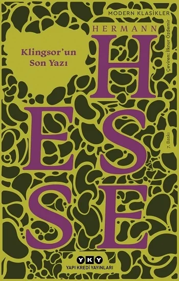 KLINGSOR’UN SON YAZI, yaşamını resim sanatına adamış, yarına değil yokoluşa inanan, bu yüzden duyguları yücelterek anı yaşamayı seçen dışavurumcu ressam Klingsor’un ölümünün yaklaştığını sezmesinin ardından hararetli gündüzler ve geceler boyunca, arzuyla sanatını birleştirdiği, son yapıtını –otoportresini– tamamlayabilmek için savaşımına sahne olan hayatının son yazına ait kısa ve esrik yolculuğunu anlatır. Hesse’nin 1919 yazında Tessin’de yoğun resim çalışmaları yaptığı bir dönemde, KLEIN VE WAGNER anlatısı ile peş peşe, birkaç hafta içinde kaleme aldığı KLINGSOR’UN SON YAZI yazarın inancını yansıtan, özgürleşme yolunda atılmış bir adımdır. Alman dışavurumculuğunun edebiyat alanındaki doruklarından biri olan Klingsor’un Son Yazı parlak, çarpıcı ve saf renklerle dolu küçük bir palet; renklerle yazılmış bir senfoni, sözcüklerle renklenmiş bir tablolar dizisidir. “Kor haline gelmiş gündüzlerde köylerin ve kestane ormanlarının içinden yürüyüp dolaştım, açılıp katlanır küçük iskemleme oturup sel gibi taşan büyüyü biraz olsun suluboya resimlerle muhafaza etmeyi denedim; sıcak gecelerde geç saatlere dek Klingsor’un köşkünde oturdum ve fırçayla becerebildiğime oranla bir miktar daha deneyimli ve daha ihtiyatlı biçimde, bu eşi görülmemiş yazın şarkısını sözcüklerle söylemeye giriştim. Ressam Klingsor’un öyküsü işte böyle ortaya çıktı.” (Hermann Hesse, “Klingsor’un Yazı’nı Anımsama”, 1938)